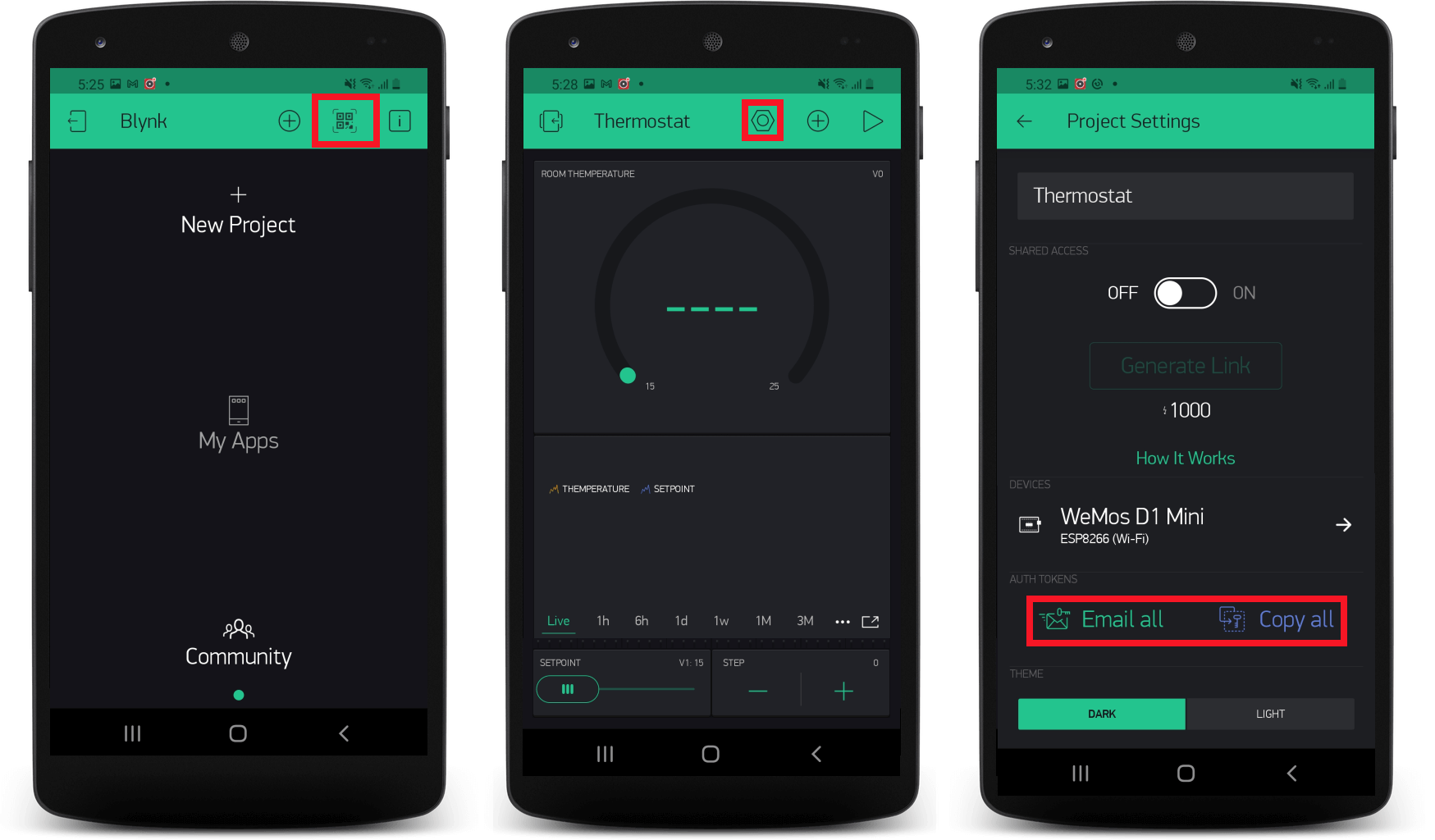 - Go back to Blynk app and RUN OpenTherm Thermostat project (press the PLAY button).