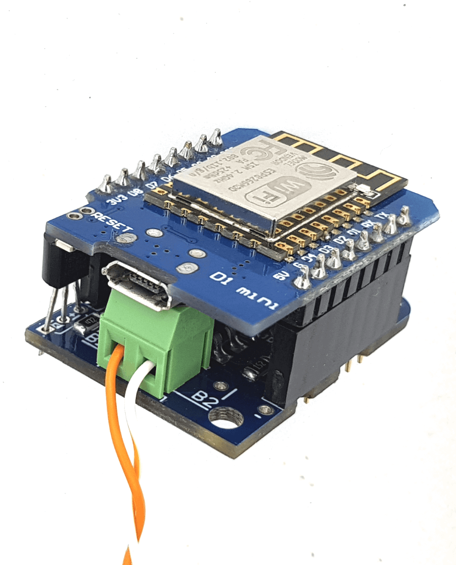 To connect OpenTherm Thermostat Shield you'll need a pair of wires and a micro-USB cable with wall charger. Connect B1/B2 terminals to the boiler (polarity does not matter) with any 2-wire cable or twisted pair. Plug in micro-USB cable to the Wemos and wall charger. Now OT thermostat should be enabled and communicating to the boiler.